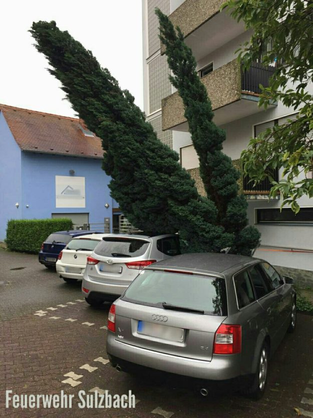 Baum auf Auto und Dach. Wie in vielen Ortschaften im Umkreis, zeigte sich auch in Sulzbach erst bei Tageslicht das Ausmaß der Unwetter aus der vergangenen Nacht. Somit wurden über den Tag noch weitere Einsatzstellen der Sturmschäden abgearbeitet. Unterstützt wurden wir u.a. durch die Drehleiter der Freiwillige Feuerwehr Bad Soden am Taunus.