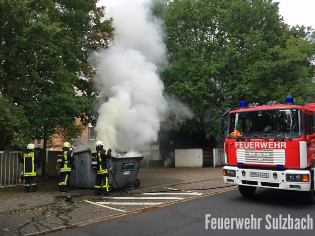 Brand im Außenbereich. Am frühen Mittag kam es zum Brand eines Müllcontainers. Das Feuer konnte schnell durch einen Trupp gelöscht werden. Es folgten Nachlöscharbeiten.